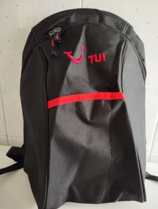 Se venden dos mochilas de la marca Almenibor. - Color principal negro con detalles en rojo. - Logo de TUI bordado en color rojo. - Bolsillo exterior cierre con velcro. - Peso máx 5 kilos. Nos las regalaron con un viaje y no se han usado nunca. También se pueden vender por separado a 2€ unidad.