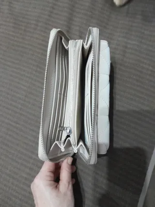 Elegante cartera de la marca Parfois. - Diseño acolchado con rombos. - Cierre metálico plateado. - Compartimento exterior con solapa.