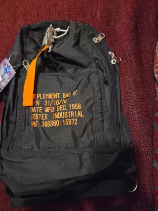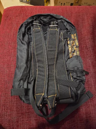 Mochila de despliegue de paracaídas de la marca Fostex Industrial. Fabricada en nylon negro. Totalmentr nueva. Sin estrenar y con etiqueta.