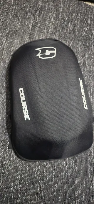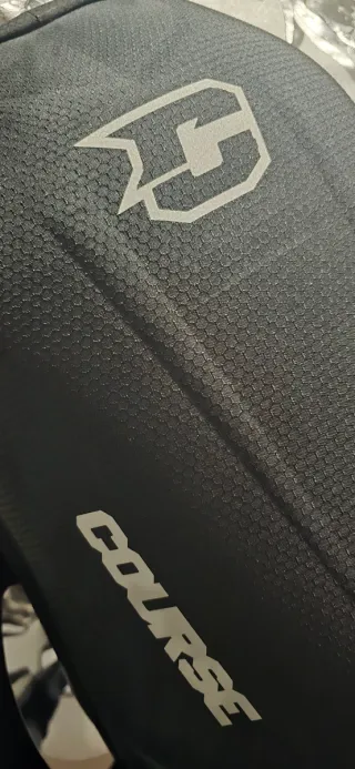 Mochila de moto con un diseño moderno y funcional. Fabricada con materiales resistentes y un acabado texturizado. - Logo de COURSE en la parte frontal. - Textura hexagonal en el tejido.