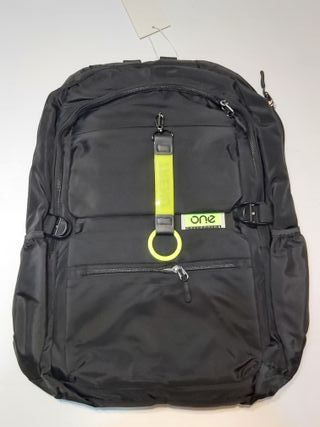 Mochila de color negro con varios compartimentos y detalles. - Cierre principal con cremallera. - Bolsillo frontal con cremallera. - Correa con aro amarillo y detalle reflectante fluorescente. - Etiqueta de la marca 'one collection'. Se hacen envíos económicos por wallapop Recogida local gratis en cp03189 o cercanias Torrevieja
