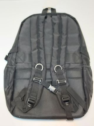 Mochila negra con un diseño moderno y funcional. Perfecta para llevar tus pertenencias de forma organizada. Con conector de carga para smartphone. Medidas aproximadas 45x31x14 - Cremallera frontal. - Correas ajustables.