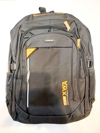 Mochila de la marca XWA con detalles en naranja. - Compartimento principal espacioso. - Bolsillo frontal con cremallera. - Bolsillos laterales de malla. - Tiradores de cremallera con detalle naranja. Hago envíos económicos por wallapop Recogida local gratis en cp 03189 ó cercanias Torrevieja