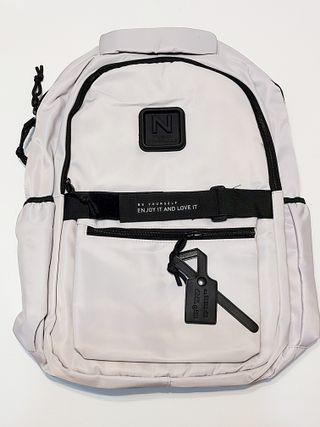 Mochila de la marca N Trend Blanca con detalles en Negro. - Compartimento principal espacioso. - Bolsillo frontal con cremallera. - Bolsillos laterales de malla. - Tiradores de cremallera. Hago envíos económicos por wallapop Recogida local gratis en cp 03189 ó cercanias Torrevieja