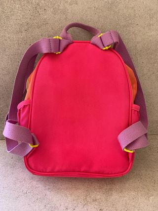 Mochila roja de la marca Ymbersa. Está en buen estado. - Tiene un compartimento principal con cierre. - Bolsillo frontal con cremallera. - Correas de hombro ajustables.