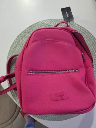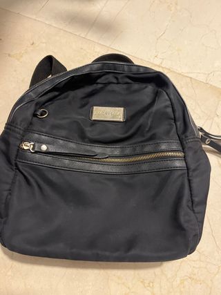 Mochila pequeña de la marca Bimba y Lola. - Compartimento principal con cierre de cremallera. - Bolsillo frontal con cremallera. - Asa de mano y correas ajustables. - Placa metálica con el logo de la marca.