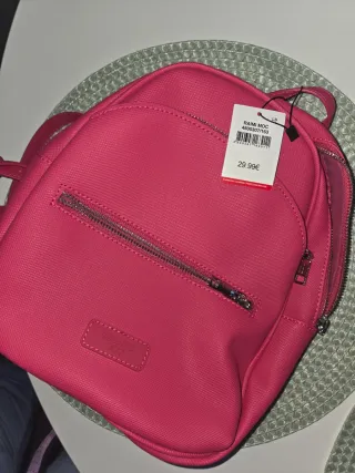 Mochila de la marca Zara en color negro. Diseño moderno y práctico. - Compartimento principal con cierre de cremallera. - Bolsillo frontal adicional con cremallera. - Asas ajustables para mayor comodidad.
