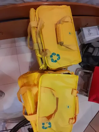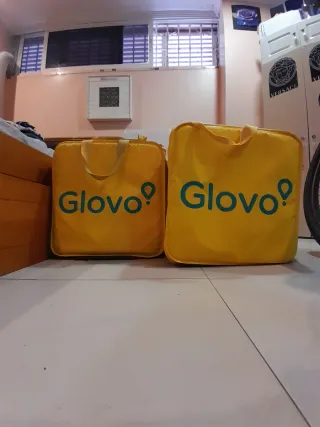 Mochila de reparto Glovo en color amarillo. - Diseño espacioso para llevar pedidos. - Asas resistentes para un transporte cómodo. - vendo las dos por 35€. Uno nuevo y otro poco usado