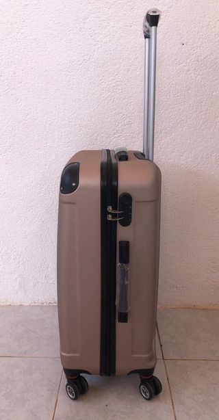 Maleta de viaje rígida de gran tamaño. Su diseño moderno y su material resistente la hacen ideal para tus desplazamientos. - Ruedas para facilitar el transporte. - Asa extensible. - Cierre de seguridad. Incluye llave, código de seguridad y factura de compra por 130€.