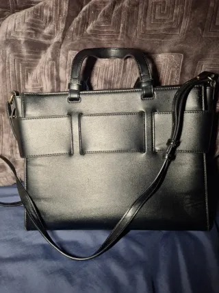 Bolso de mano con un diseño moderno y elegante. - Cierre de solapa con detalle metálico. - Correa ajustable para llevar al hombro o cruzado. - Acabado brillante.