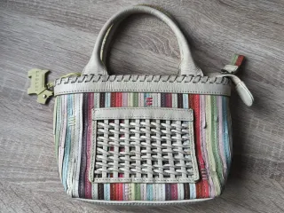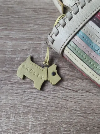Bolso de mano Radley con un diseño de rayas multicolor y detalles de cuero. - Diseño de rayas verticales en varios colores. - Panel frontal con tejido de cuero trenzado. - Asa de cuero. - Incluye charm de perro Radley.