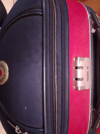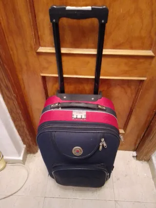 Maleta roja pequeña Maleta 4 ruedas Tamaño cabina Altura de 53cm Frente 32cm Profundidad de 20cm Puede verlo en nuestra tienda Atocateja calle Bergantín N 24 Torrevieja al valor de 12 Euros
