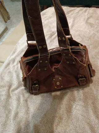 Bolso de cuero con un diseño clásico y elegante. - Material: Cuero genuino. - Color: Marrón. - Cierre de cremallera. - Asas de hombro. - Detalles metálicos.