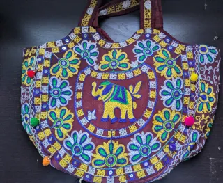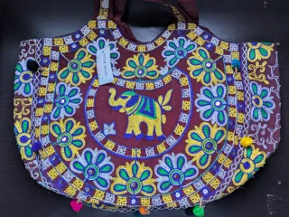 Bolso de mano con un diseño étnico, confeccionado e inspirado en la India, con un vibrante bordado y detalles. - Adornado con un elefante central y motivos florales. - Incorpora lentejuelas y pompones de colores. - Cierre superior. - Asa cómoda para llevar al hombro o en la mano. - Nuevo a estrenar. Envío los pedidos con mucho cuidado para garantizar que lleguen en perfectas condiciones. Se intentará, salvo por falta de tiempo, entregar en correos el paquete el mismo día.