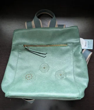 Bolso/Mochila de la marca española Dulcinea Heredia a estrenar. Conserva su etiqueta original. Color: Verde azulado / Teal (un tono muy favorecedor y tendencia). Diseño: Artesanal, étnico y relajado, con diseños bordados, tachuelas y texturas que imitan el cuero envejecido Apertura con bolsillo exterior e interior vertical con cremallera. Polipiel de alta calidad, muy resistente y fácil de limpiar. Estado: 10/10. Nunca usado, ideal para regalo. Perfecto para looks casuales, festivales o uso diario. Envío los pedidos con mucho cuidado para garantizar que lleguen en perfectas condiciones. Se intentará depositar el mismo dia