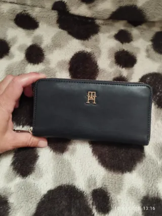 Monedero de la marca Tommy Hilfiger en color negro. Diseño elegante y práctico. - Cierre de cremallera. - Logo metálico dorado en la parte frontal.