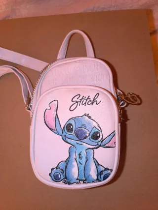 Adorable bolso pequeño con el personaje de Stitch. - Diseño frontal con ilustración de Stitch. - Texto Stitch en la parte superior. - Acabado en material sintético.