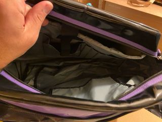 Conjunto de tres bolsos de mujer con diferentes estilos y diseños. - Bolso estilo mochila en color morado. - Bolso pequeño negro con flecos y cadena. - Bolso con estampado de bicicleta y flores. Excelente estado todos