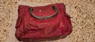Mochila de imitación piel con un diseño moderno. - Compartimento frontal con solapa y hebilla. - Cierre de cremallera superior y trasero - Asa de mano y correas ajustables. -De 30x30 cm aprox - No se ha usado ni una vez
