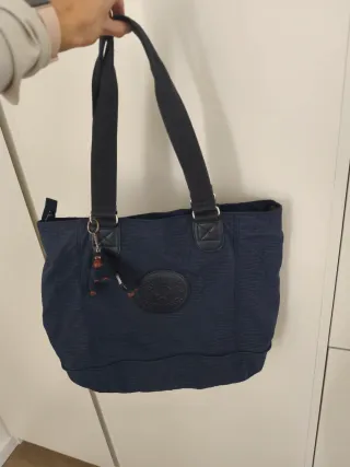 Bolso shopper de la marca Kipling en color azul. Un accesorio práctico y espacioso para el día a día. - Diseño moderno y funcional. - Cierre de cremallera. - Dos asas para llevar al hombro. - Detalle de logo circular en la parte frontal. - Incluye un pequeño llavero decorativo.