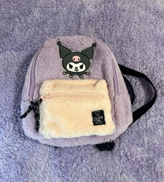 Adorable mochila de peluche con diseño de Kuromi. - Material suave y tierno. - Bolsillo frontal con cremallera. - Detalle de personaje Kuromi. - Correas ajustables.
