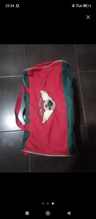 Mochila de la marca Ferrari en color rojo. Cuenta con un cierre con hebillas y múltiples compartimentos, incluyendo unos bolsillos laterales (no aparecen en las fotos porque hay un máximo de 10). Está sin estrenar.