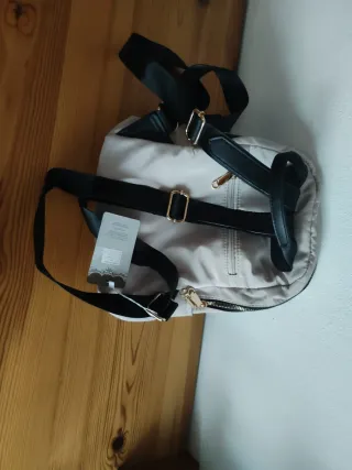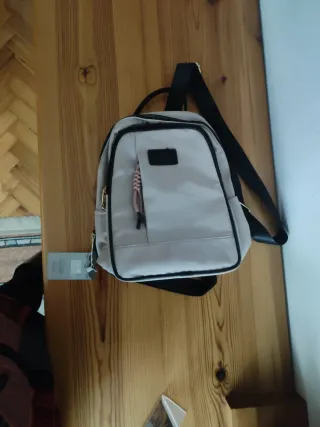 Mochila tela beige y gris