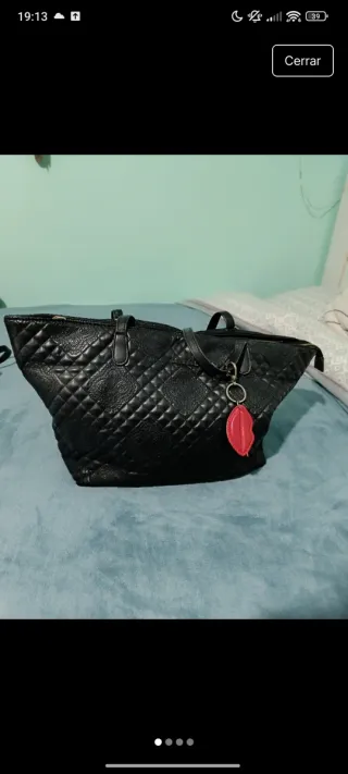 Bolso de mano Desigual con un diseño acolchado. - Cremallera. - Asa que vale para llevar al hombro o en la mano - Incluye un llavero con forma de labios rojos.