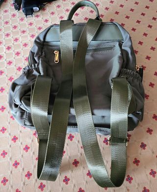 Mochila de tamaño pequeño en color verde, ideal para uso diario Nueva sin usar. - Material Nailon,textil - Cierre de cremallera dorado. - Bolsillo frontal con cremallera. - Correas ajustables. Se Regala Una Alarma Personal de Emergencia nueva a estrenar con batería incluida, Alarma 130dB, Linterna LED, para niñas/Mujeres/protección.
