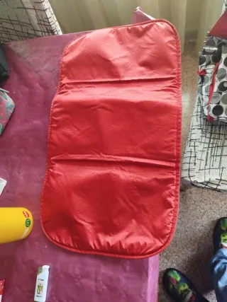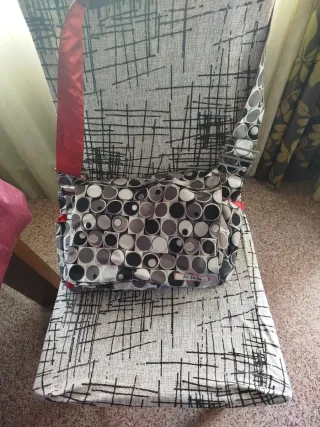 Bolso de viaje con cambiador. - Diseño con círculos en varios tonos. - Correa ajustable en rojo.