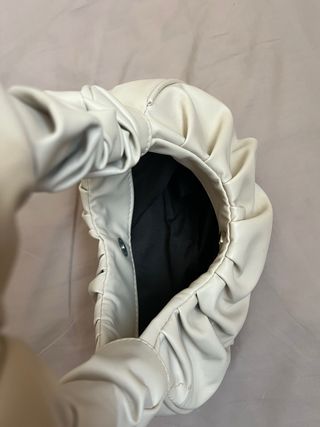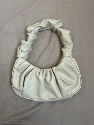 Bolso de mano con un diseño moderno y elegante. - Material: Piel sintética. - Asa fruncida. - Forma de media luna.