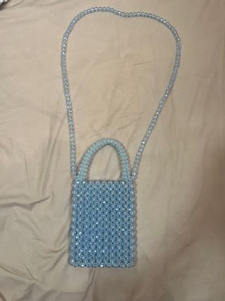 Este mini bolso es un accesorio muy chic y moderno. - Fabricado con cuentas de perlas. - Diseño de asa corta y correa larga. - Color azul vibrante.