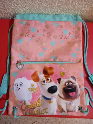 Mochila pequeña de lentejuelas que cambian de color con orejitas . Sin apenas uso. De un palmo de alto.