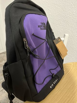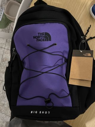 Mochila The North Face modelo Big Shot en color morado y negro. Perfecta para el día a día o para tus aventuras. - Compartimento principal espacioso. - Bolsillo frontal con organizador. - Correas ajustables y acolchadas. - Cuerda elástica exterior para sujeción.