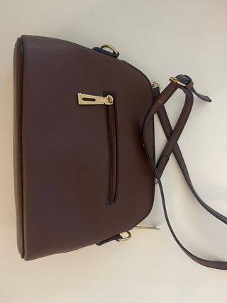 Bolso bandolera de polipiel con un elegante acabado. - Color marrón chocolate. - Cierre de cremallera.