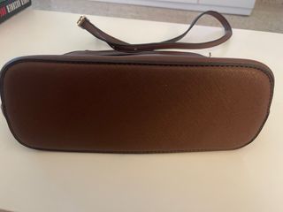 Bonito y práctico bolso con 3 compartimentos, cierre por solapa, asa de mano y bandolera ajustable de tejido que se puede intercambiar. Material símil polipiel, muy blandito. Sin usar. Medidas en fotos.