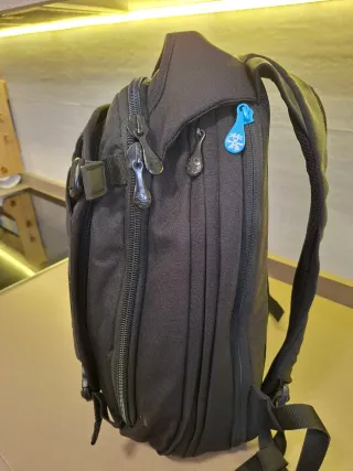 Mochila techair de unos 38/40cm de ancho por 30/32 cm de alto, de loneta, con acolchado tipo airbag para proteger el portátil. Varios compartimentos.