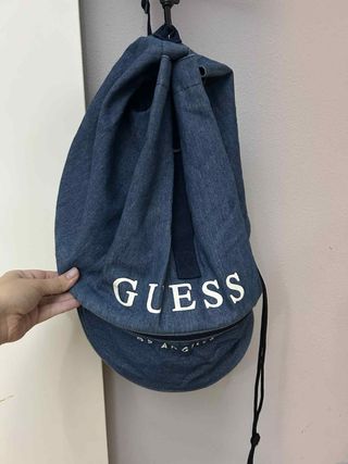 Mochila deportiva Guess de color azul. Está en buen estado. - Diseño tipo saco. - Asa superior para colgar. - Cordones para ajustar el cierre.