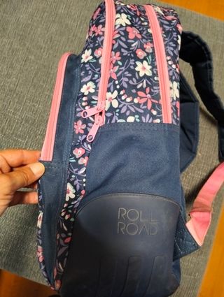 Mochila Roll Road con un bonito estampado floral. Se encuentra en muy buen estado. - Diseño con flores rosas, blancas y moradas. - Cremalleras en color rosa. - Tejido resistente.