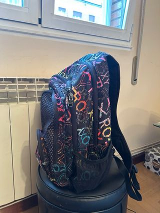 Mochila con un diseño llamativo y moderno. - Estampado de letras Roxy en varios colores. - Bolsillo frontal con cierre de cremallera. - Bolsillos laterales de malla.
