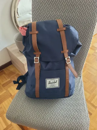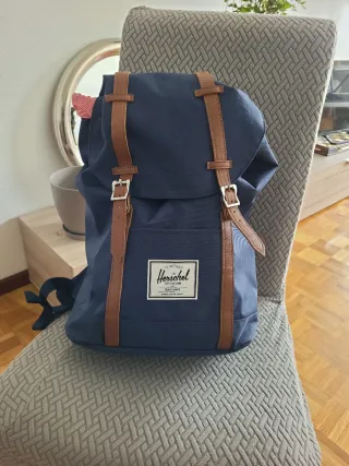 Mochila Herschel de color azul marino, ideal para llevar tu portátil. Viene sin estrenar. 45x15x30 Compartimento para portatil de 16 pulgadas - Cierre con correas de cuero. - Bolsillo frontal con cremallera. - Etiqueta de la marca en el frontal.