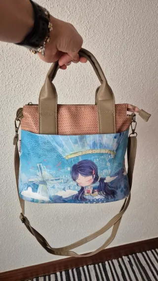 Bolso con un diseño vibrante y lleno de color. - Estampado floral y geométrico. - Múltiples bolsillos exteriores. - Asas de mano y correa ajustable.