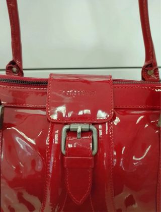 Elegante bolso de mano con acabado brillante. - Material: charol. - Color: rojo intenso. - Diseño con detalles de costuras. - Cierre de hebilla decorativa. - Hecho a Mano - Bolso Vintage