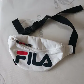 Riñonera de la marca Fila. - Color blanco. - Logo de Fila en color azul marino y rojo. - Cremallera con detalle rojo y negro. - Correa ajustable negra.