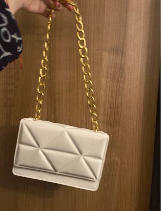 Elegante bolso blanco con un diseño acolchado y una cadena dorada. - Diseño geométrico acolchado. - Asa de cadena metálica dorada.