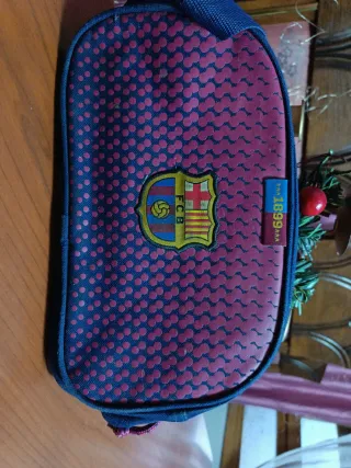 Neceser con el escudo del FC Barcelona y el año de su fundación. - Diseño con puntos en color rojo y azul. - Cierre de cremallera.