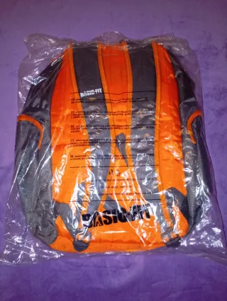 Mochila de la marca Basic-Fit con un diseño moderno. - Color principal gris. - Detalles en color naranja. - Cierre con cremallera.