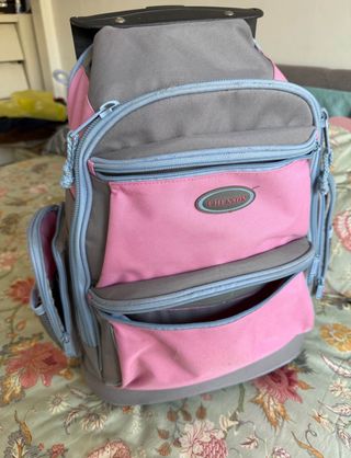 Mochila práctica y con estilo, perfecta para el día a día. Diseño bicolor en gris y rosa. Múltiples compartimentos para organización. Cierre de cremallera.