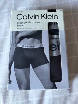 Pack de tres calzoncillos Calvin Klein. Lo vendo porque lo compré y posteriormente comprobé que no era mi talla. No ha sido usado. - Tejido de microfibra cepillada. - Diseño elástico para mayor comodidad. - Características: Odor Resistant, Soft, Wicking.