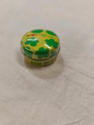 Pequeño bálsamo labial con un diseño alegre y floral (15ml) - Envase metálico con tapa. - Estampado de flores verdes sobre fondo amarillo con los típicos tréboles. Para coleccionistas, ya que está descatalogado. O para hacer un detalle. Varias unidades.